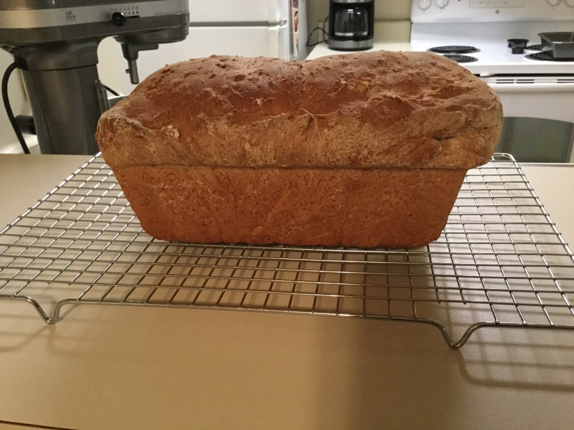 Let loaf sit for 5 minutes and then remove from loaf pan onto a cooling rack. I normally cut the bread and put butter on it soon after so I get to taste the freshest bread ever π