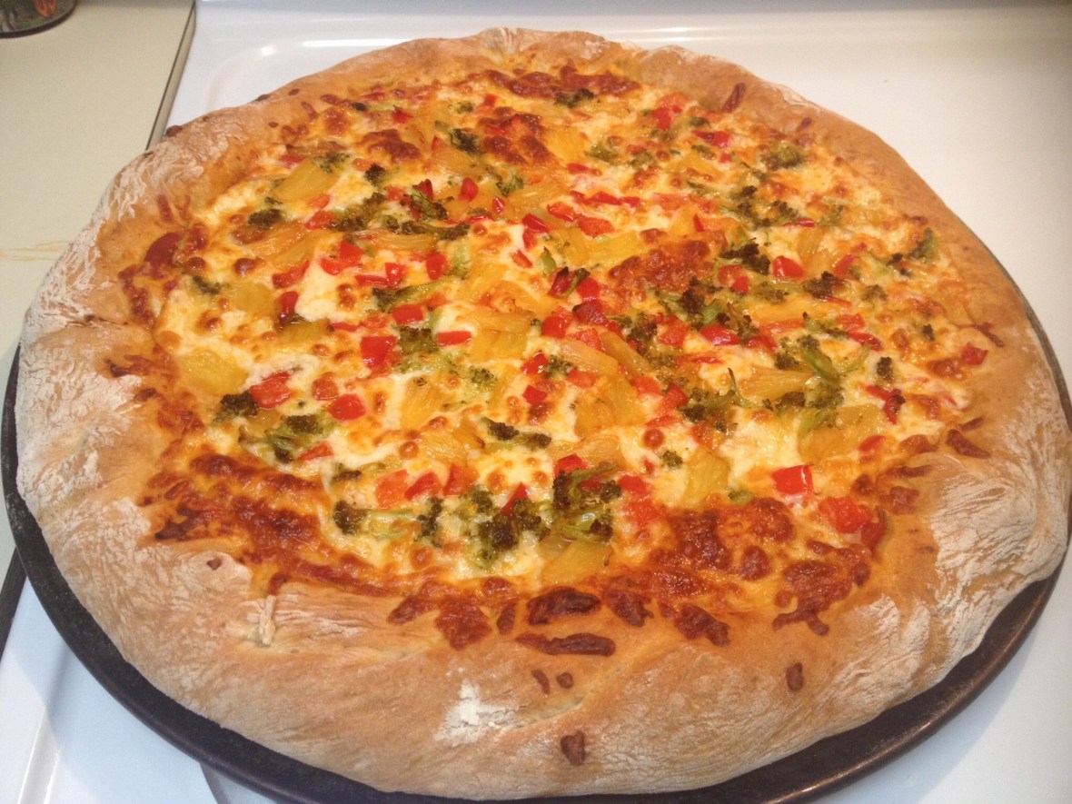 Our family tradition is to have Friday pizza nights. It’s like a celebration for making it through the workweek. Yes, I do not go to a corporate job but I am always on call 24/7 so we all get to celebrate our work week π so Friday I decided to make a pineapple, broccoli and red bell pepper pizza. Holy cow it was amazing!
